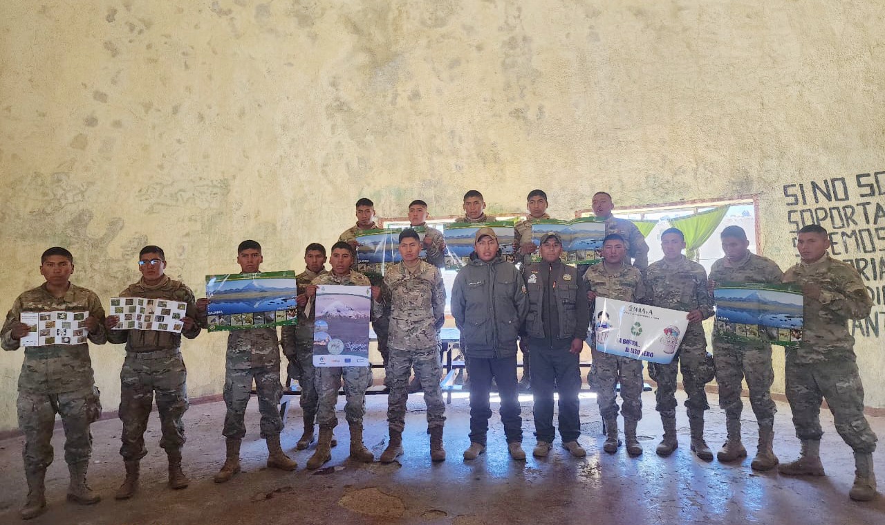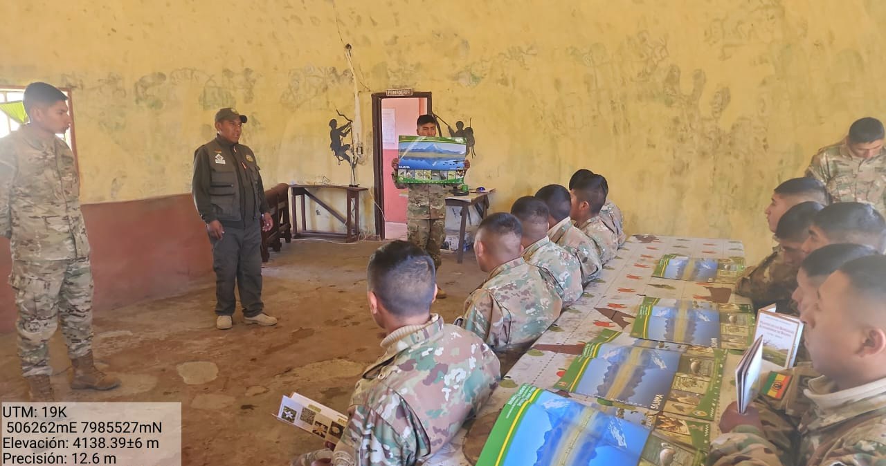 El cuerpo de protección del Parque Nacional Sajama, distrito Laguna, realizó un taller de sensibilización sobre el cuidado del medio ambiente, reciclaje como también información elemental del área protegida, dirigida al cuerpo militar que se encuentra instalado en la comunidad Lagunas.