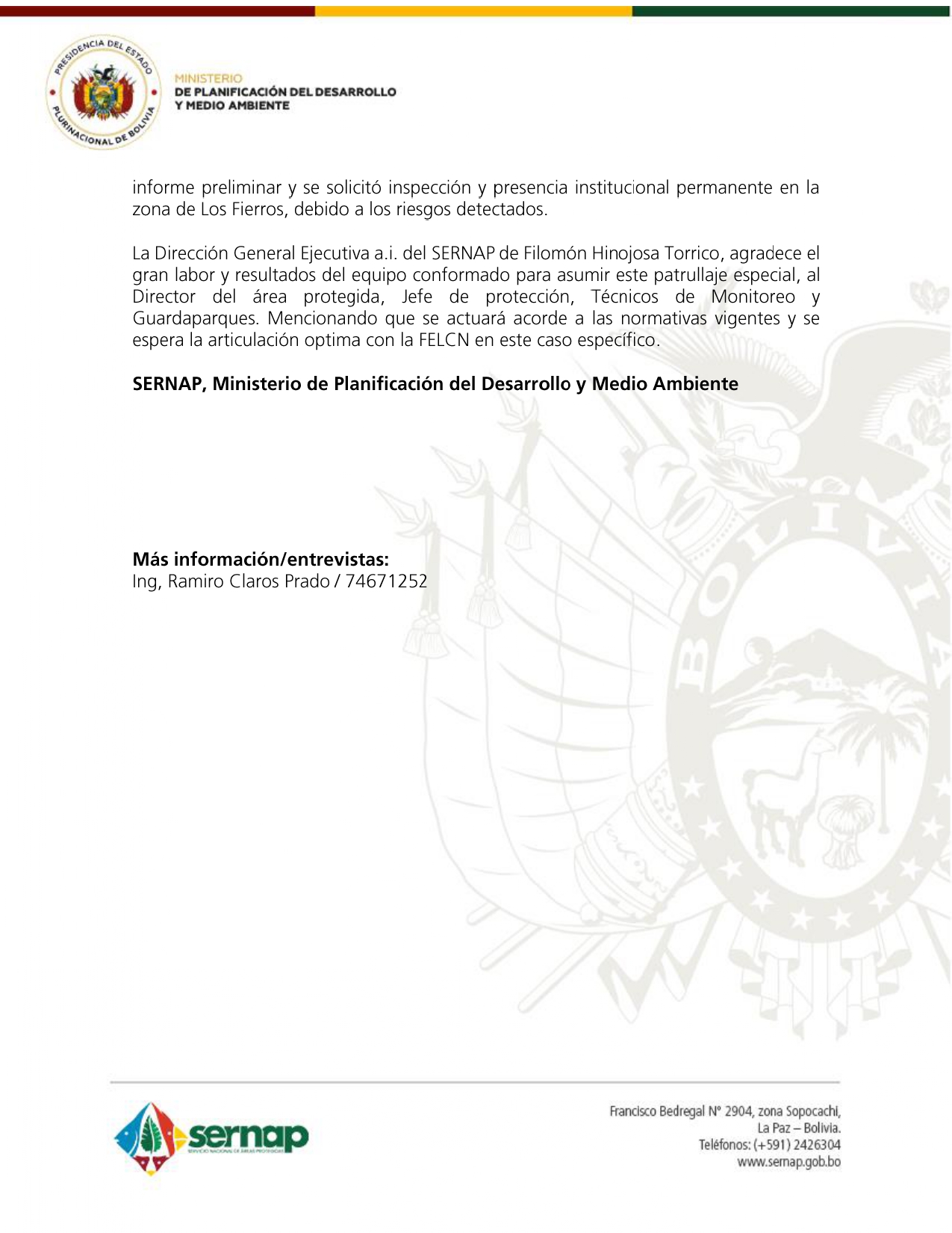 SERNAP REALIZA PATRULLAJE ESPECIAL Y SECUESTRA EQUIPOS RELACIONADOS A ACTIVIDADES ILÍCITAS EN EL PARQUE NACIONAL NOEL KEMPFF MERCADO